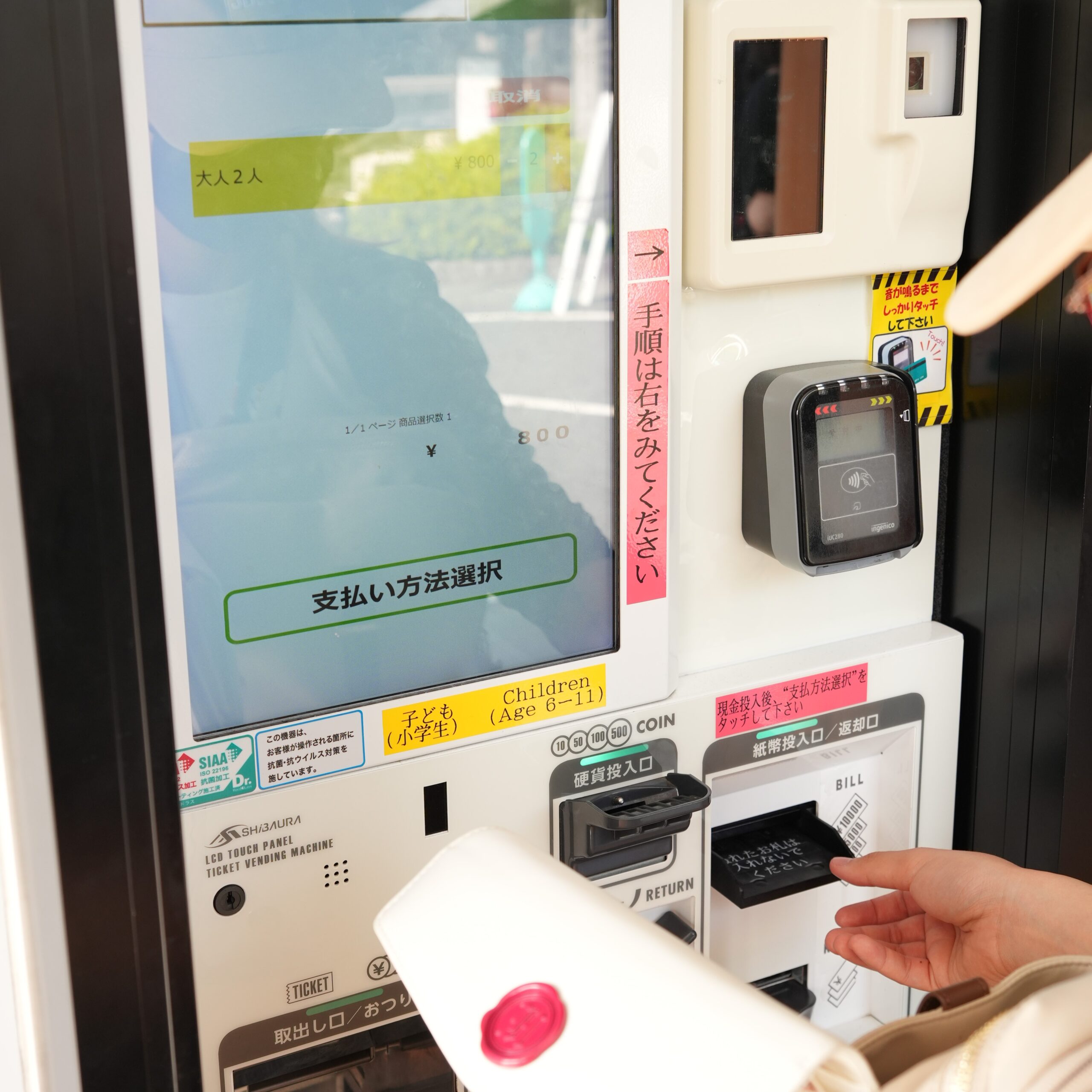 左手邊是自動售票機,也能使用IC卡購票。成人是四百日圓,兒童則是兩百日圓。